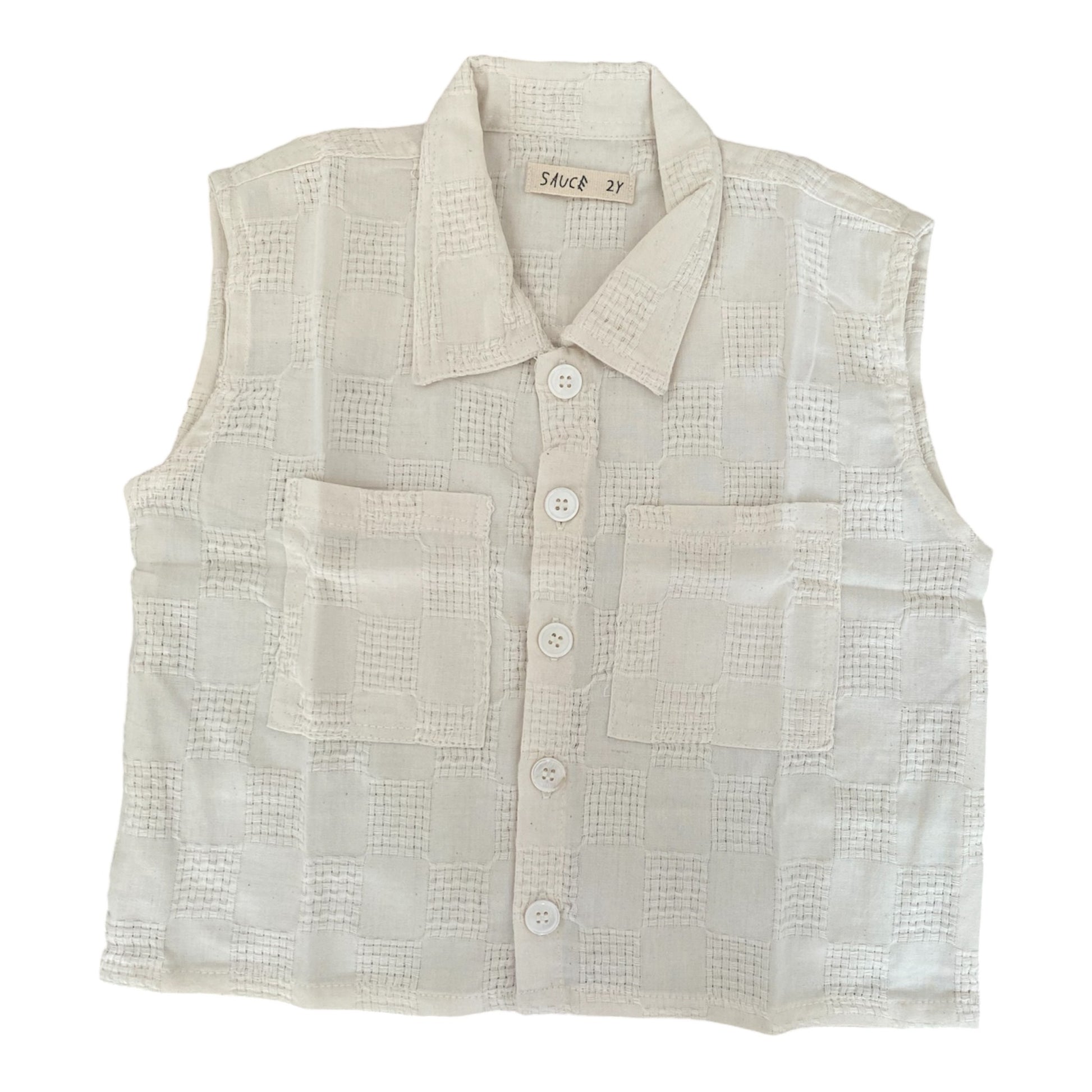 The Best Vest is made from 100% Cotton with cross-weave detail. Featuring a collar, front buttons and front pockets.