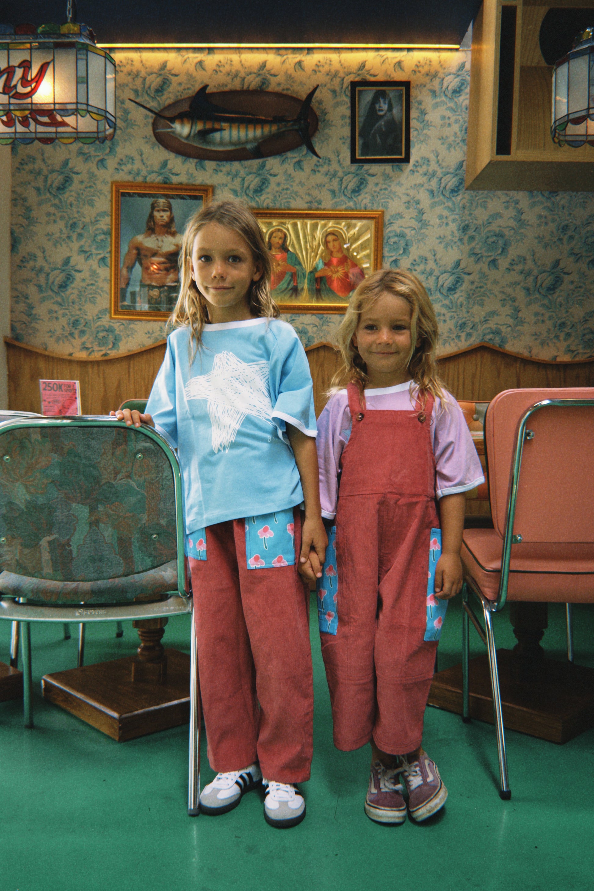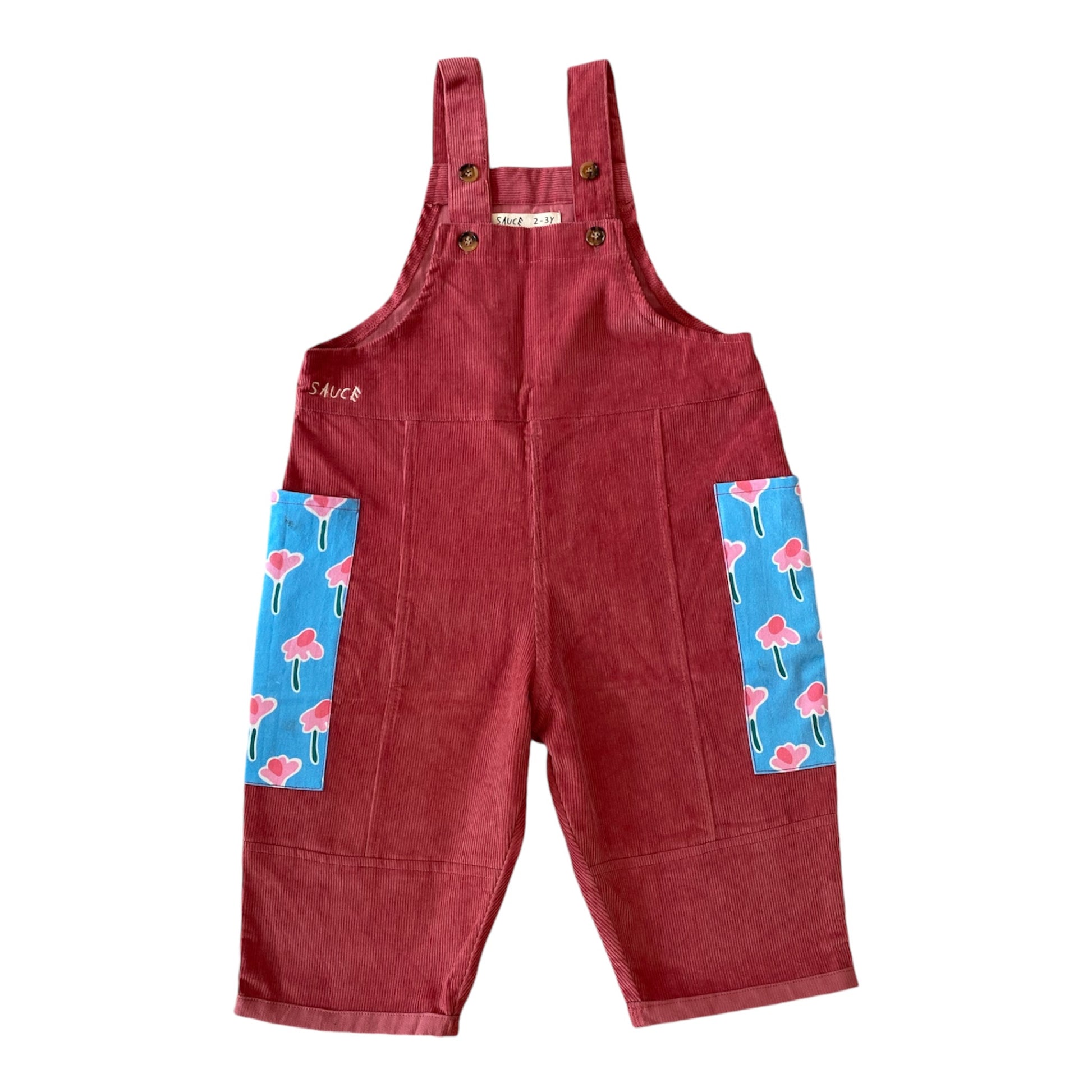 a new oversized wide fit overall featuring custom printed pockets. adjustable straps, button closures. an ankle length design. signature SAUCE embroidery.