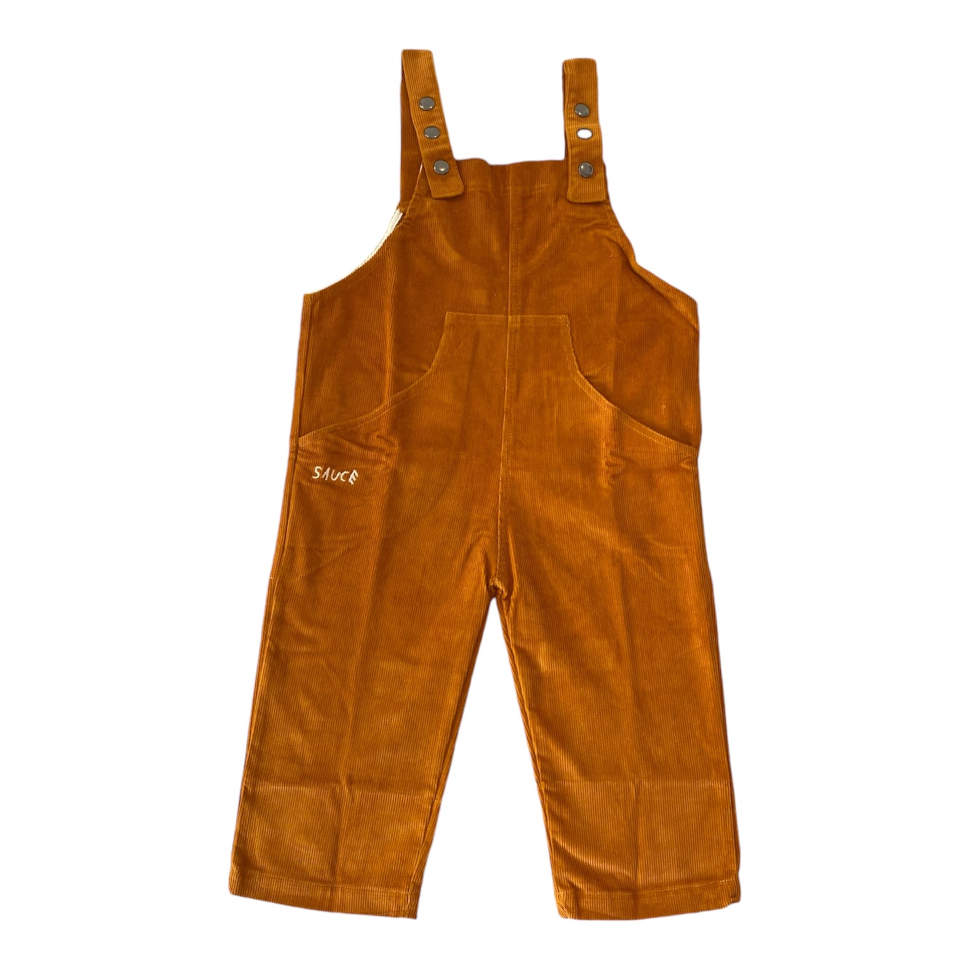 Our Move Smooth Overalls in Tangerine - crafted from a soft cotton corduroy, in a playful Tangerine. Featuring adjustable straps, front and back pockets, and our signature embroidery detail.