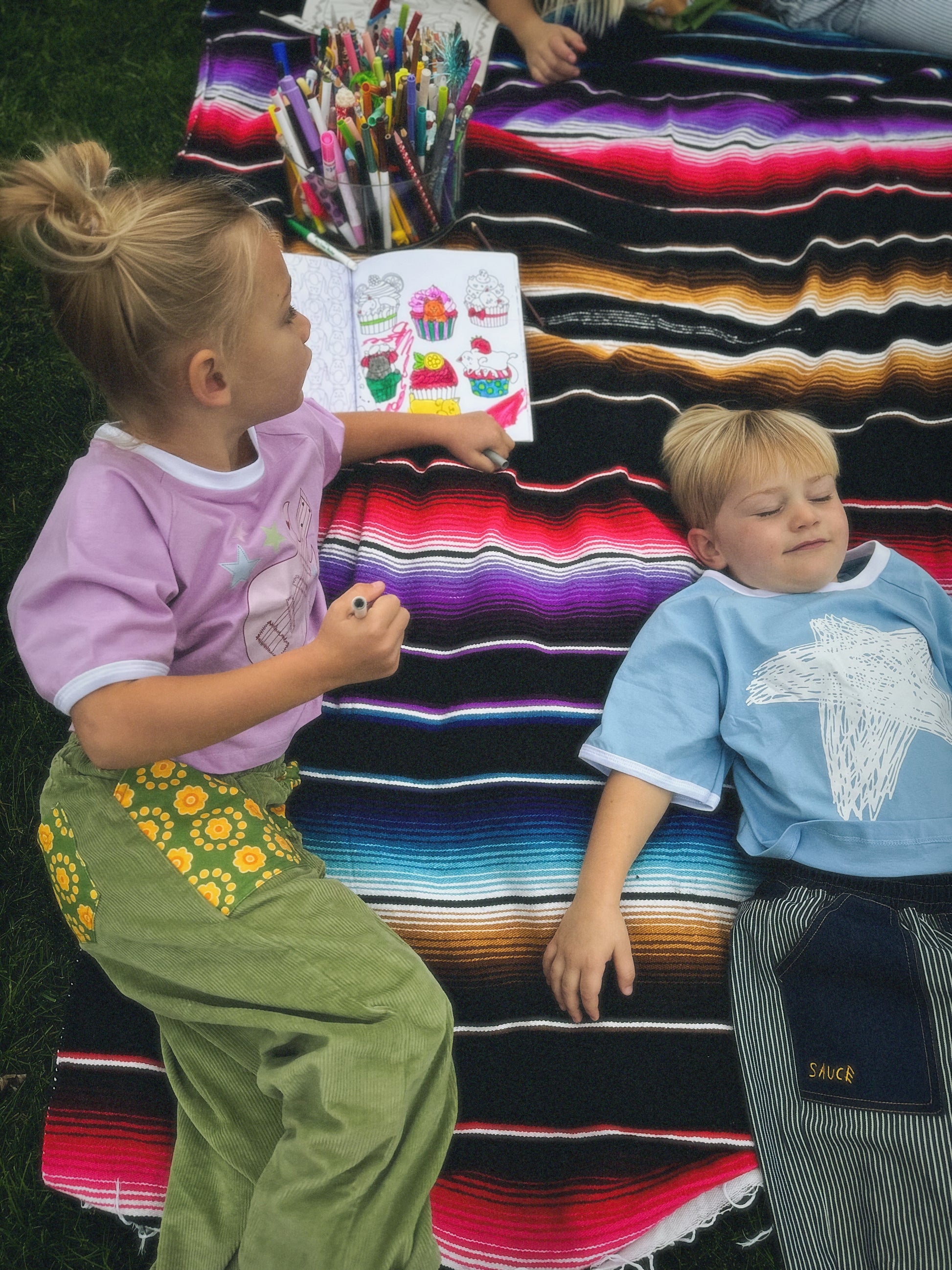 an oversized, boxy fit with a crewneck, a dropped shoulder. scribble star graphic screen printed across the front.